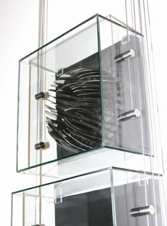 Date: 2006 Medium: Steak knives, wood, glass Dimensions: 120 x 40 x 20cm |