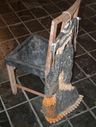Date: 2004 Medium: Lead sheet, lace, wooden chair Dimensions: 60 x 35 x 35cm |